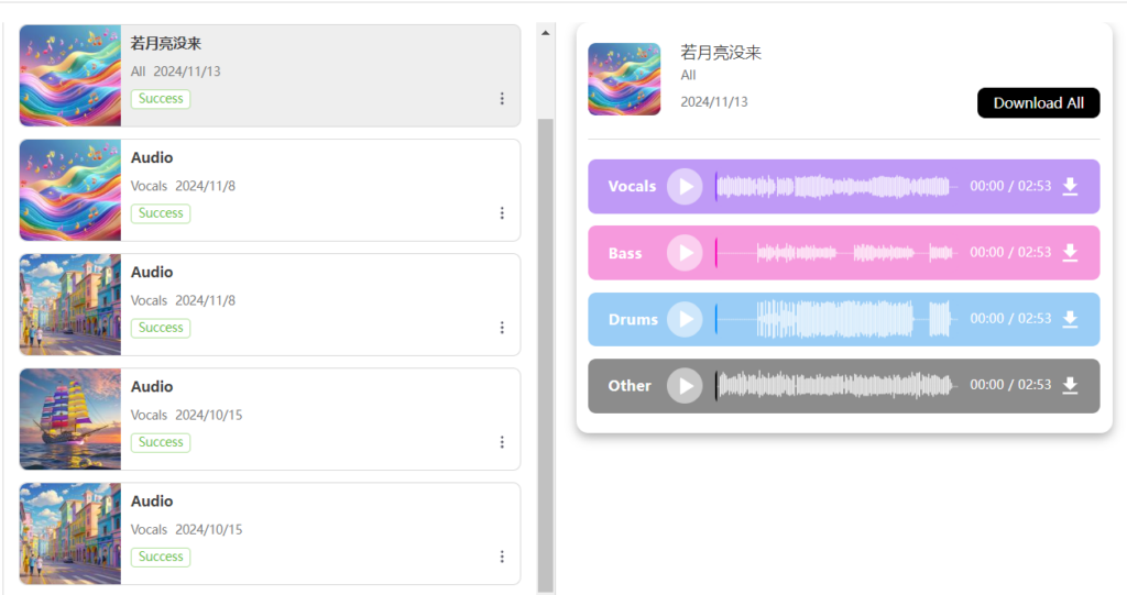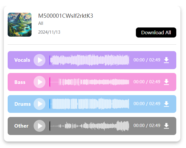 After you remove lead vocals from songs, you can preview each track and download them individually. For karaoke tracks, download the instrumental parts without the vocals. If you’re remixing, you might download only the vocals or bassline.